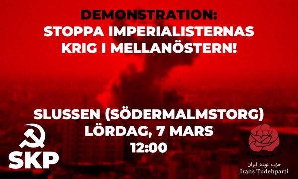Publicerad den 4 mars, 20264 mars, 2026 av Sveriges Kommunistiska Parti Demonstration i Stockholm – Stoppa Imperialisternas Krig I Mellanöstern